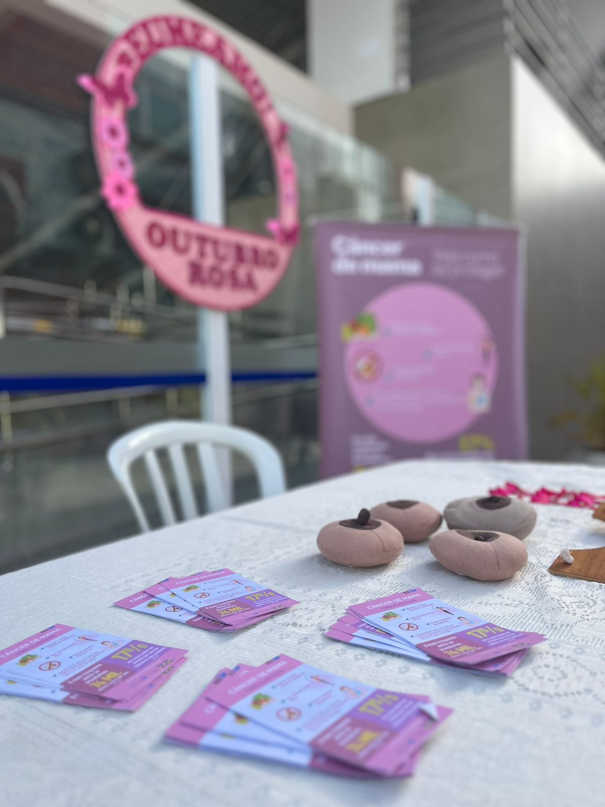 A equipe de saúde do Sesc distribuiu materiais informativos sobre a prevenção e a importância do diagnóstico precoce do câncer de mama e do câncer do colo do útero, que estão entre os mais frequente no Brasil.
