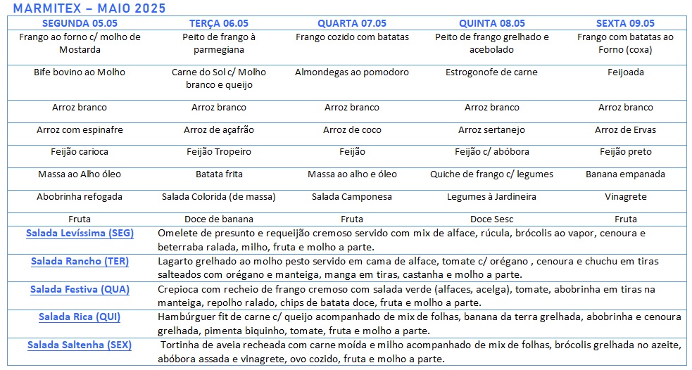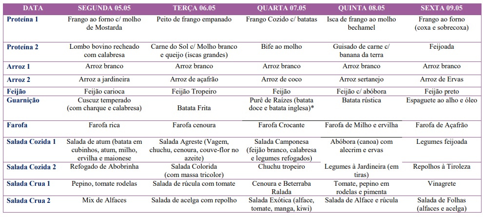 Cardápio -05 a 09/05/2025