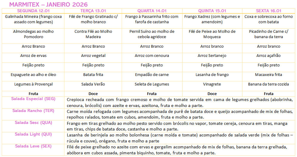 Cardápio -12/01 a 16/01/26