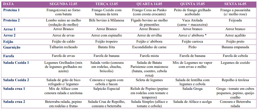 • Unidade Siqueira Campos: Almoço – 11h30 às 14h