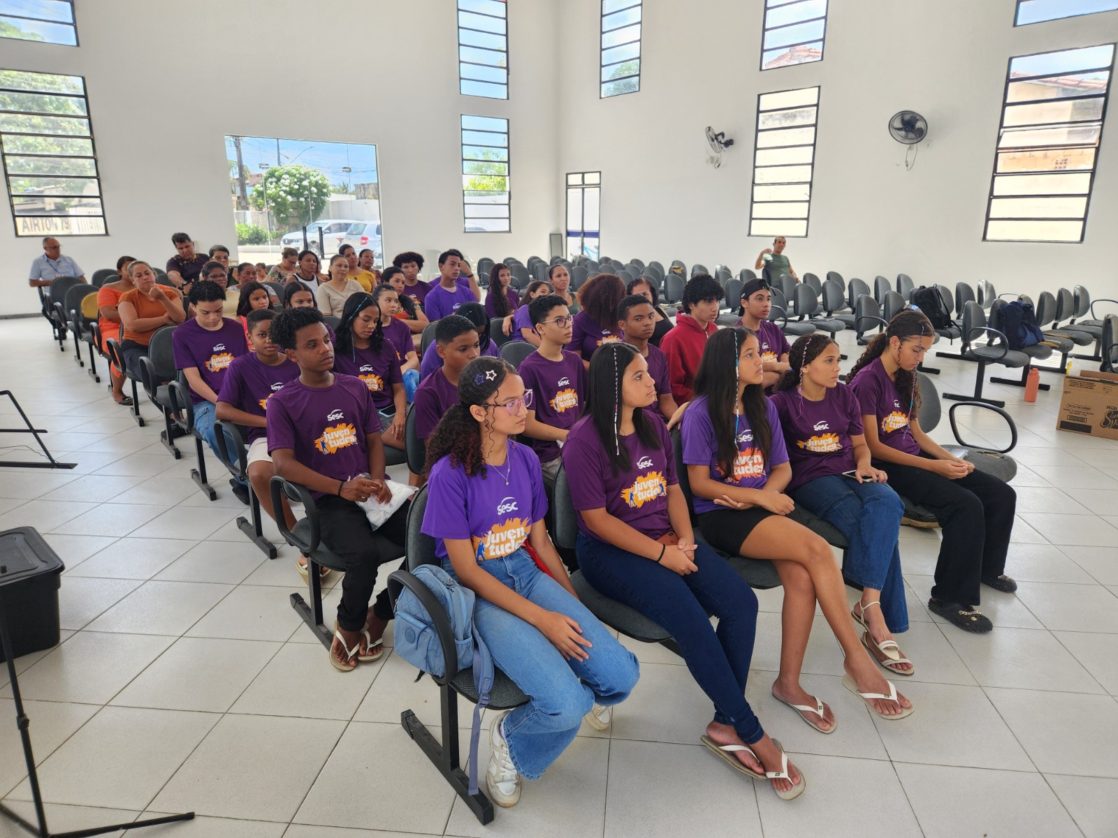O Projeto Sesc Juventudes promoveu a aula inaugural no dia 11 de fevereiro na comunidade do Mosqueiro, na Zona de Expansão em Aracaju (SE). O momento reuniu adolescentes e seus familiares em um encontro de integração e acolhimento, com apresentação da equipe responsável pelo desenvolvimento das ações.